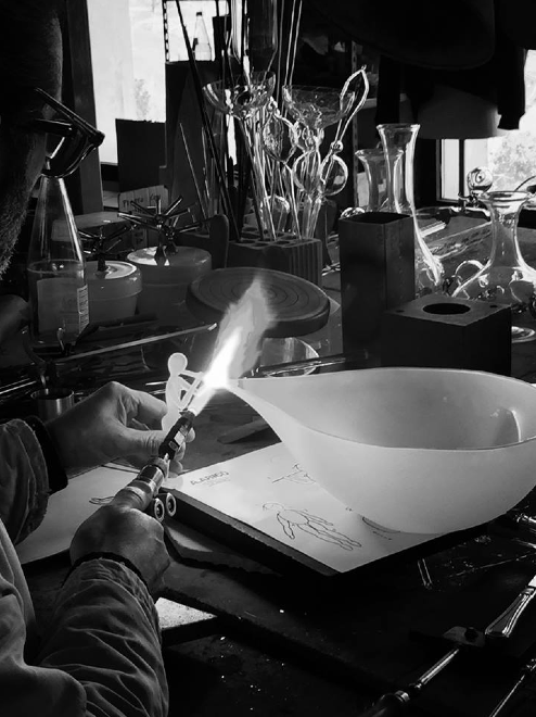 Created in 2014 by Silvia Ariemma, Editamateria works on the relationship between creativity and the culture of know-how, and stems from the collaboration and interaction of the Italian designers and the skills of the excellence in artisanship where together designers and craftsmen shape their insights. Editamateria begins its journey by giving voice to matter, understood as the foundation of all things but also the “mater” from which we all come, from which we have learned to see from our center in the Mediterranean the rest of the world, to whom we turn to tell and listen to the stories of “MADE In”, nurturing curiosity and research through continuous exchanges and comparisons. A research that began with wood, glass and ceramics analyzed through their production process, the designers’ thinking and the skilled hands of craftsmen. The project is now presenting the work of 6 Italian designers ( Antonio Aricò, Cristina Celestino, Giacomo Moda e Brunella Vallauri, Oliver Thomas Wall and Andrea Bouquet) all representing the excellence of Italian artisans, with their unique objects, imperfect in their uniqueness capable of transmitting through the tale of the matter and of the hands of those who created and manufactured them. EDITAMATERIA becomes a collection point for Italian materials designed and created with skill, a network to establish synergies between niches in craftsmanship, designers and production processes in order to create new possibilities for the different actors involved each in his own way in the design planning, prototyping, development and final distribution of the design object. There is a special bond that ties Editamateria to Israel, Rebecca Treves partner in Editamateria lives and works in Tel Aviv. In 2014 the glass works of Antonio Aricò, as a part of The Editamateria Collection, were selected by Rossana Orlandi for Larte Restaurant in Milano.