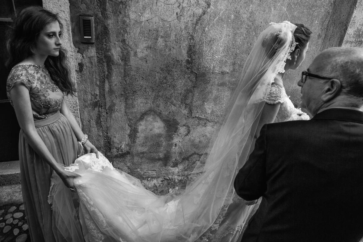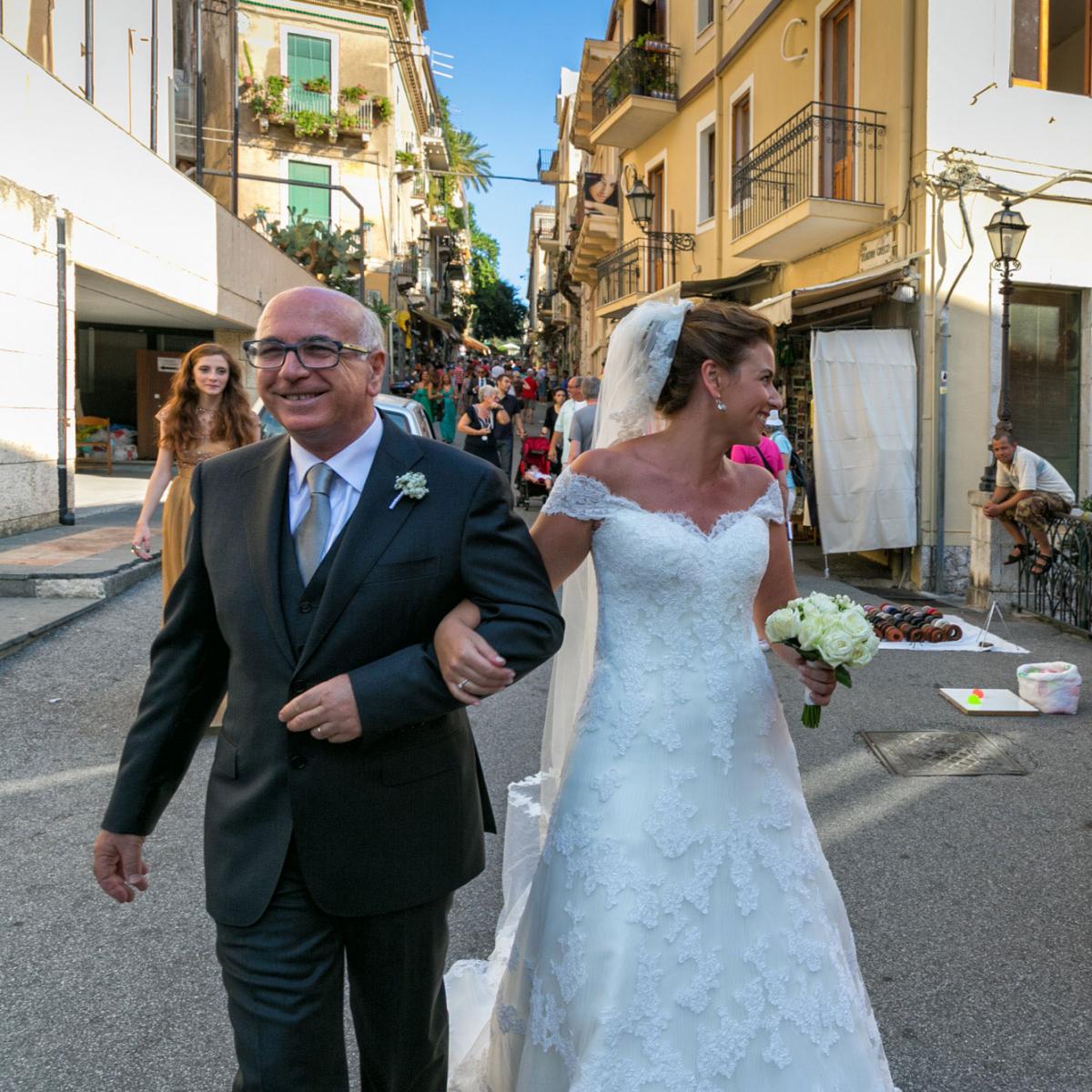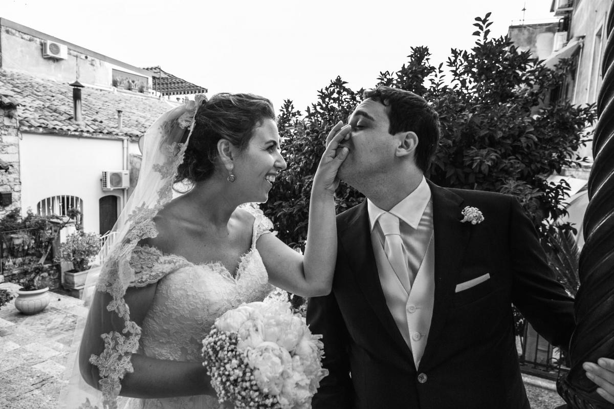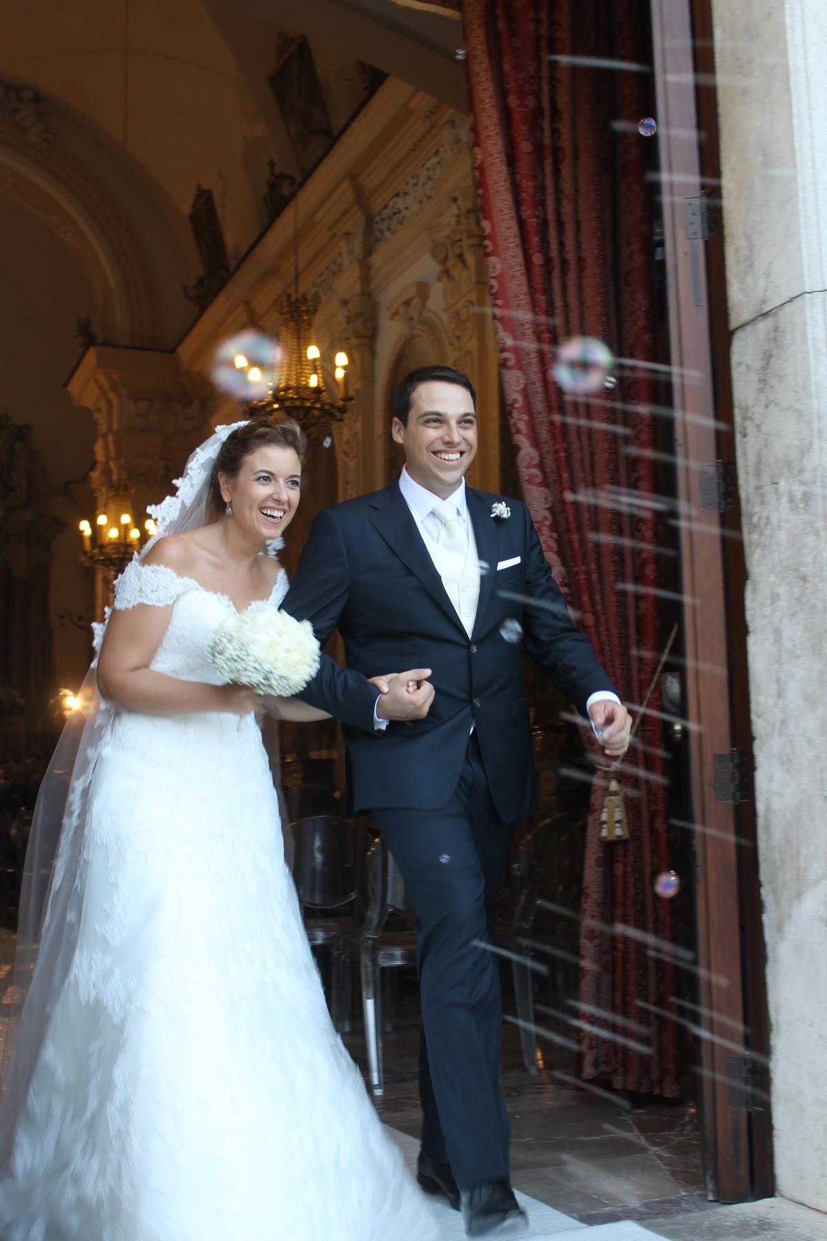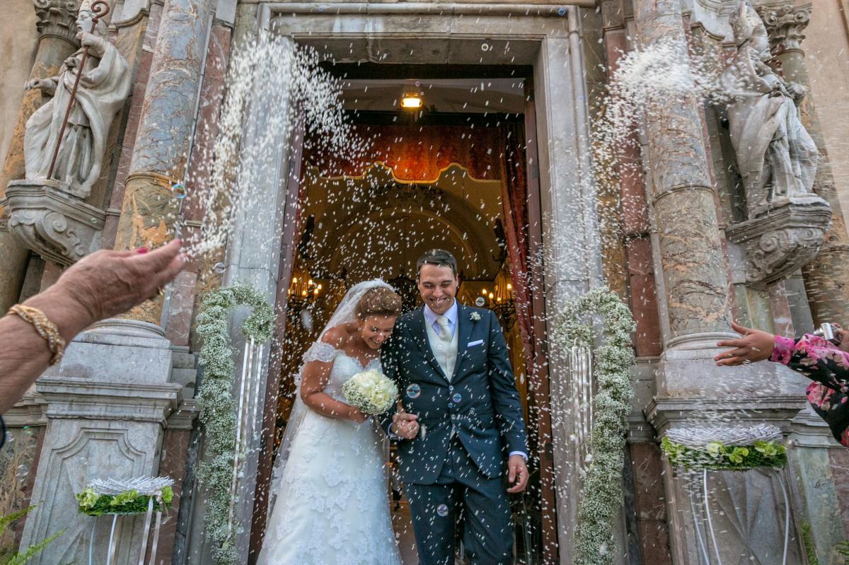 Tra tanti flash pronti a immortalare la fatidica uscita dalla chiesa, veniamo travolti da una pioggia di riso, petali e bolle di sapone, e dai sorrisi, gli applausi e le urla di una claque d’eccezione che ci incita a scambiarci il primo di una lunga serie di baci da marito e moglie…