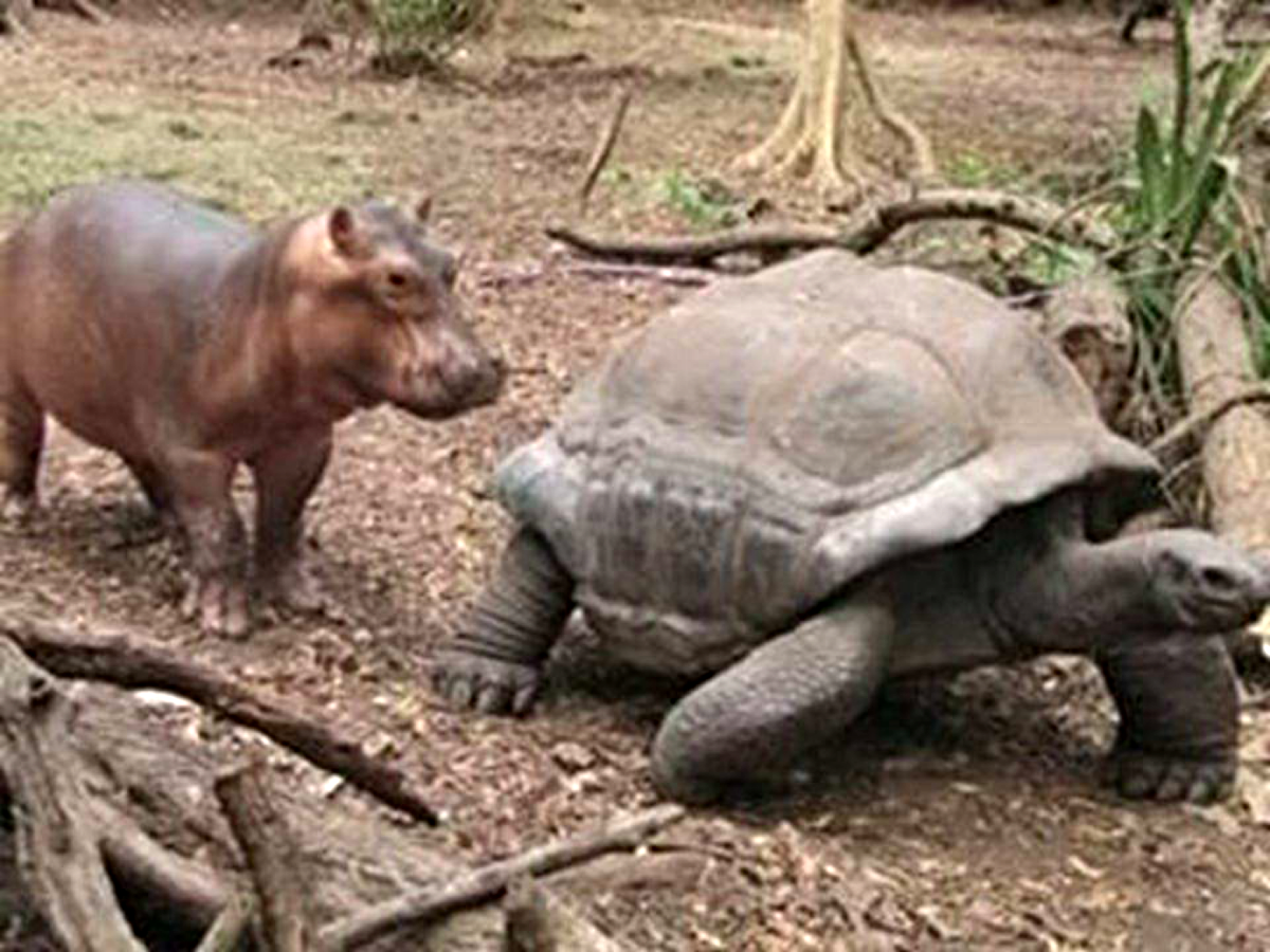Lafarge National Park, Mombasa, KENYA: Owen, a 1 year old baby hippo (already 660 lbs.) lost his parents to the Tsunami on dec, 25th.