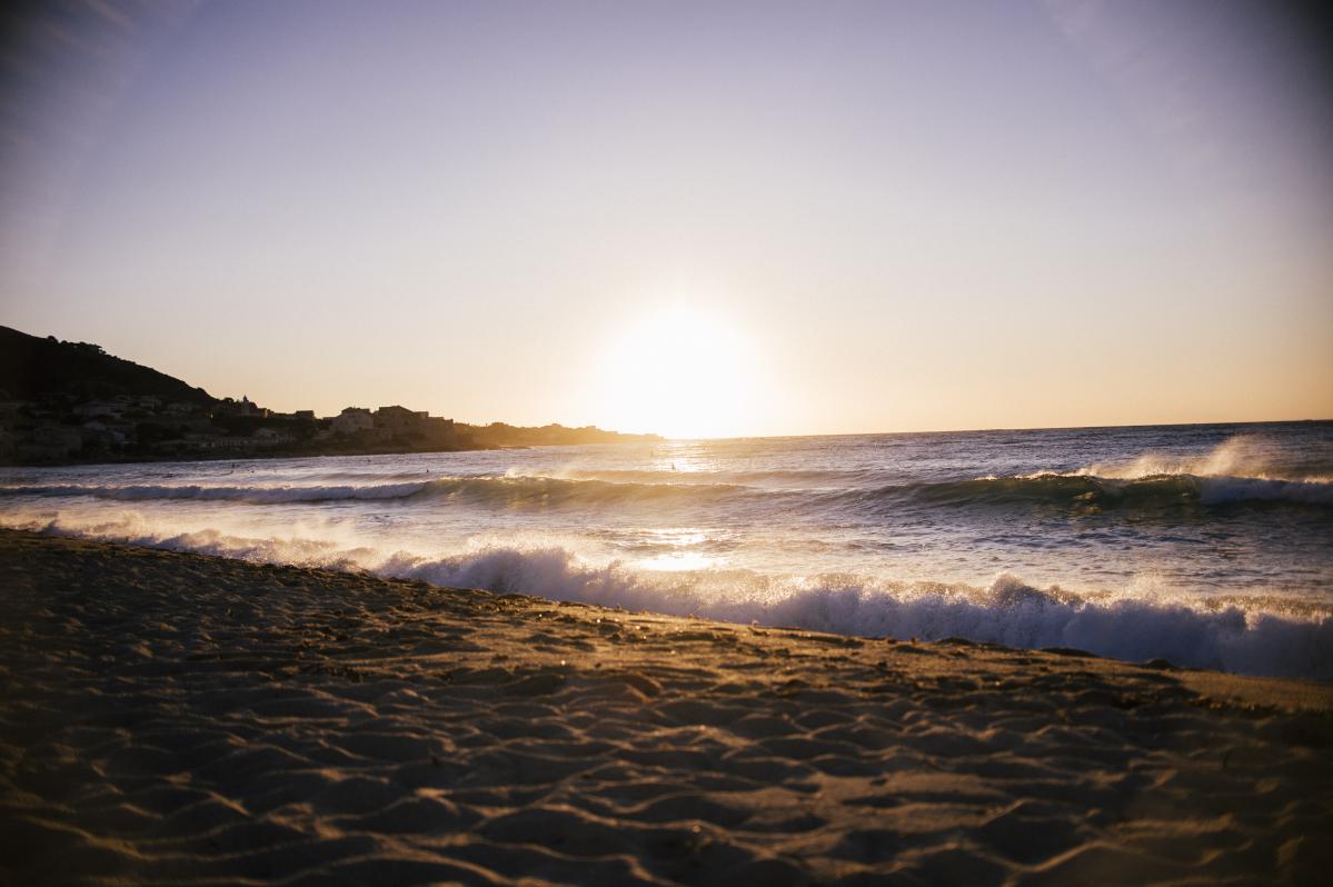 La plage d'Aregno offre son meilleur point de vue pour un "coucher d'apéro" splendide !