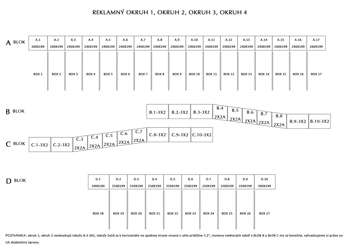 Plocha stien nachádzajúcich sa pred parkovacími miestami v celkovej výmere viac ako 860 m2 dáva možnosť umiestniť na steny garáží reklamy, ktoré sa budú nachádzať v priamom zornom poli šoférov resp. spolujazdcov pri nájazde resp. výjazde do alebo z parkovacieho miesta (veľkoplošné reklamy, individuálna reklama pred každým parkovacím miestom). Reklamy sú umiestnené na veľkoplošných tabuliach vid. obrazová príloha.