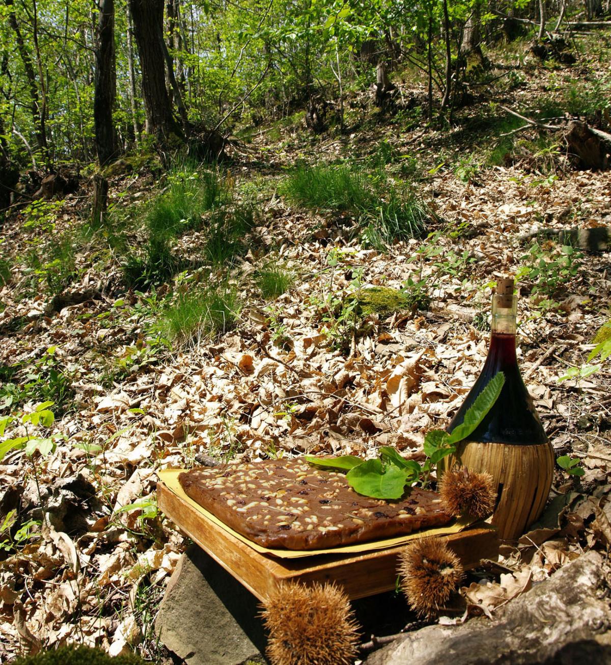 Migliaccio, baldino (nell’aretino), toppone o pattona (nel livornese), ghirighio (nel pratese). Il castagnaccio è il tipico dolce toscano fatto con la farina di castagne.