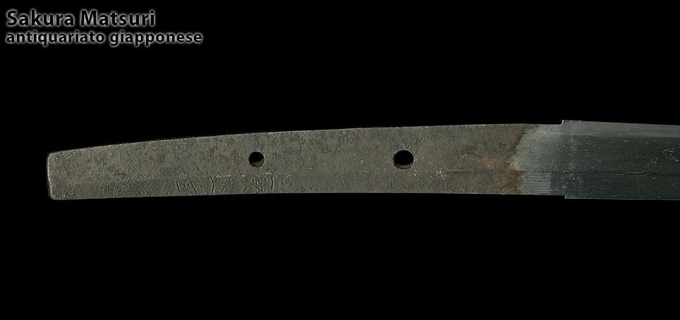 sunagashi. Nakago ubu, yasurime katte sagari, 2 mekugi ana. Horimono bo-hi maru
