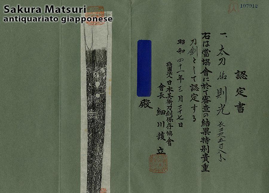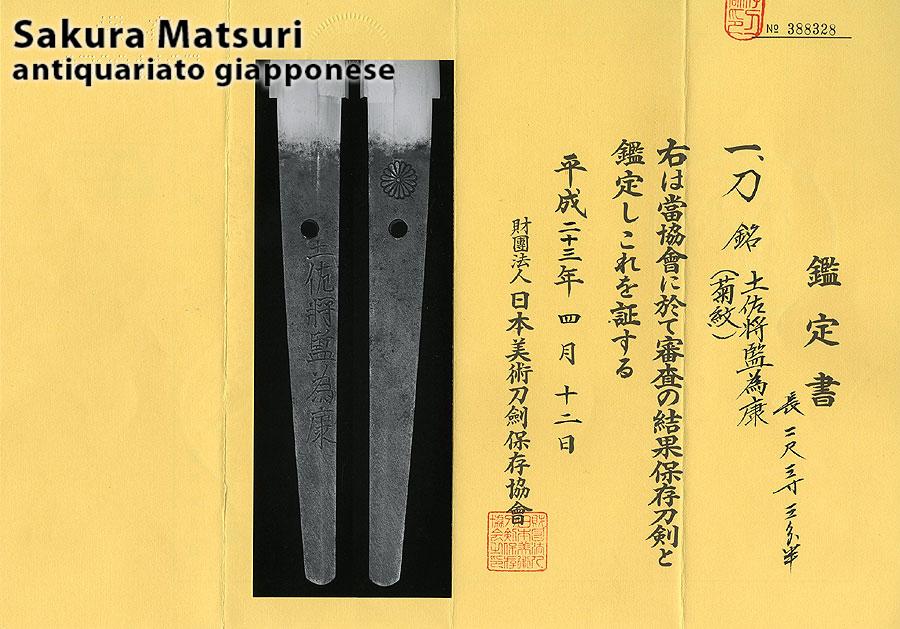 kamon igeta/hanabishi. Certificato Hozon Touken Kanteisho.