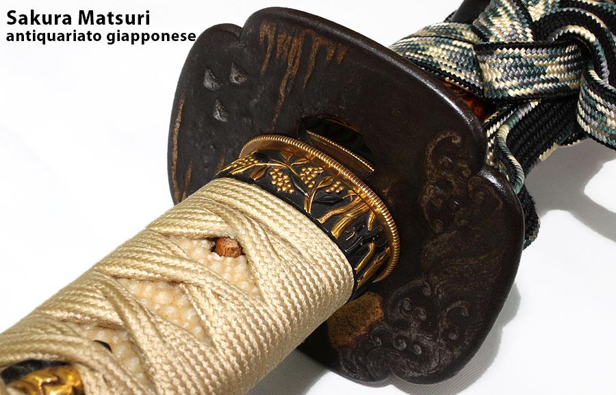periodo Edo, con tsuba ana gata (a tema floreale) sulla quale reca il doppio