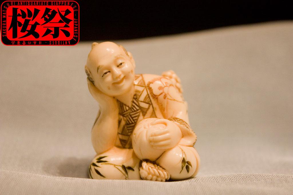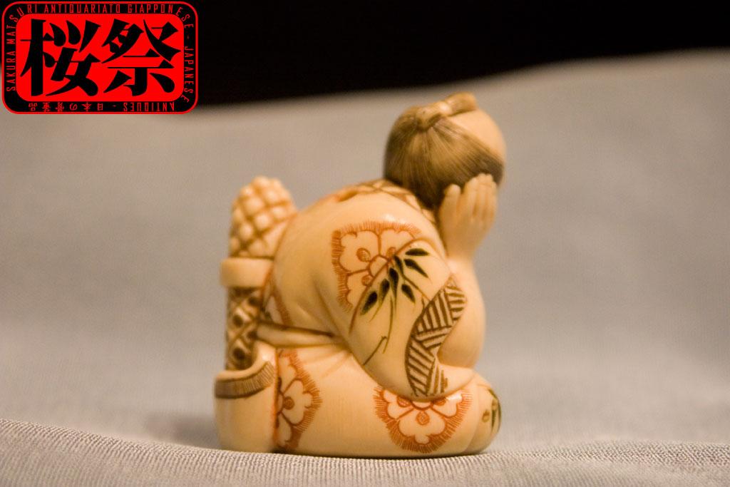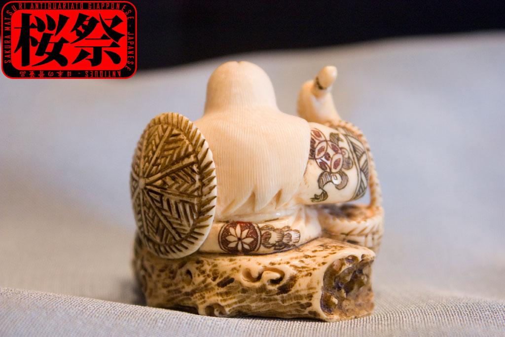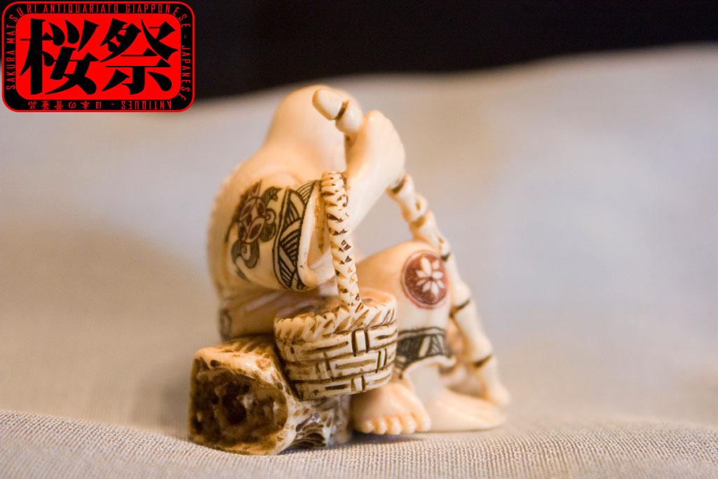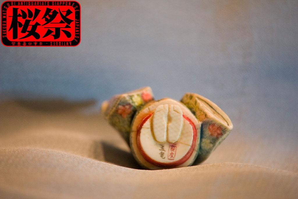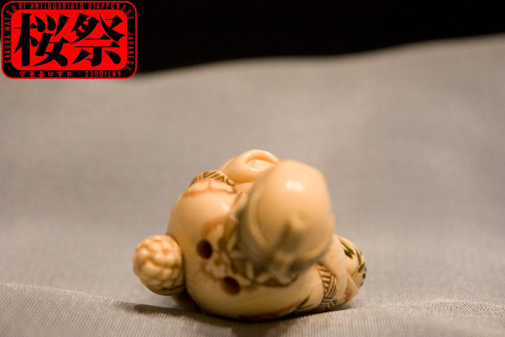 peculiaritá risiede proprio nel colore, inusuale nei netsuke, qui distribuito