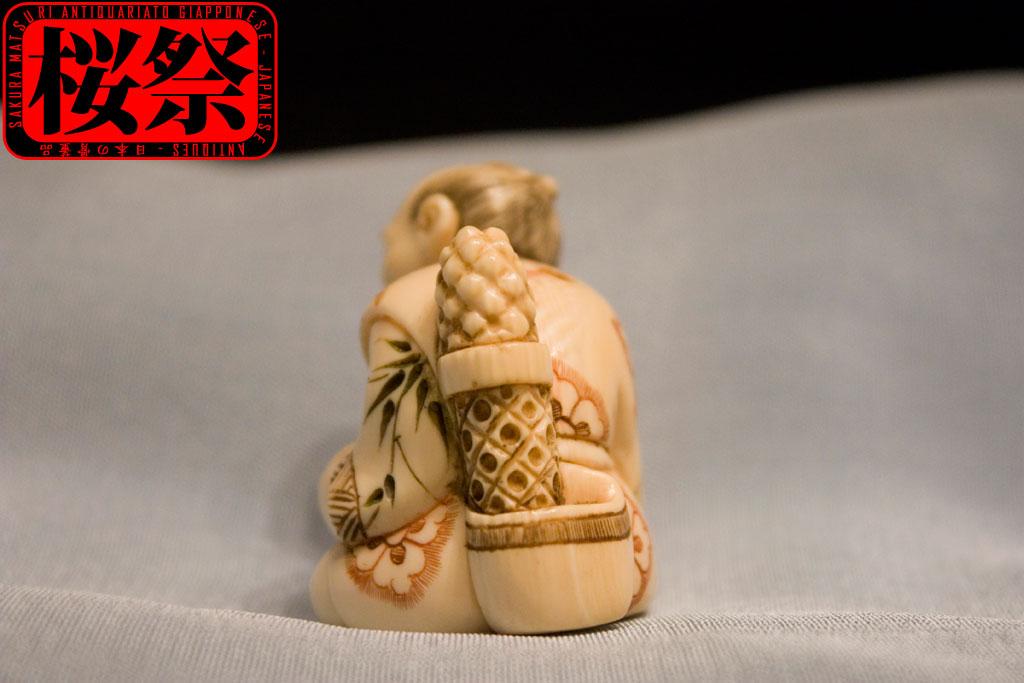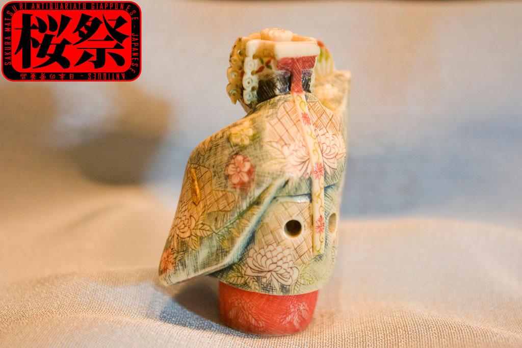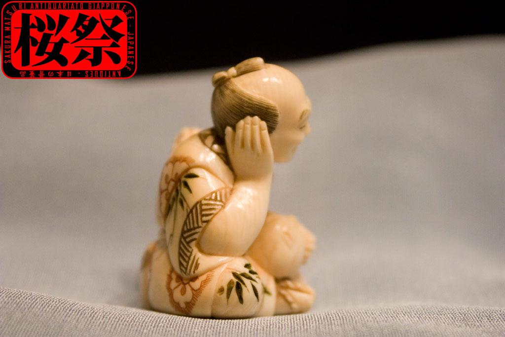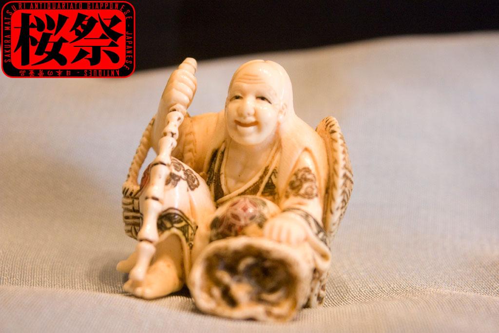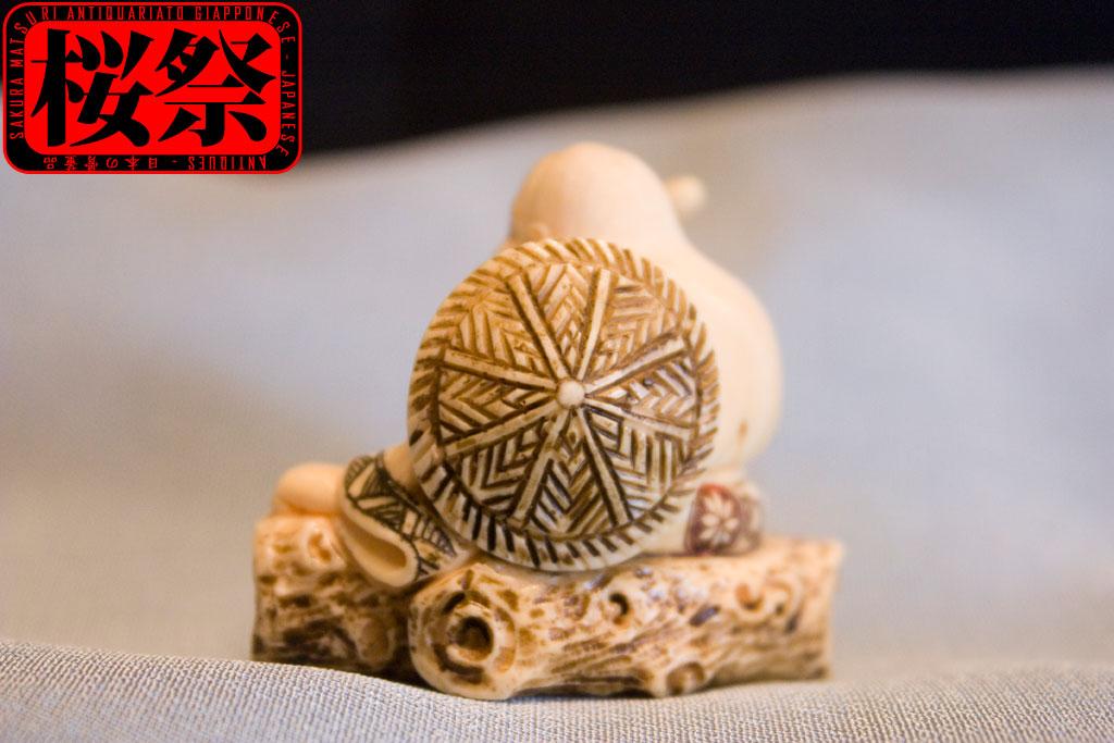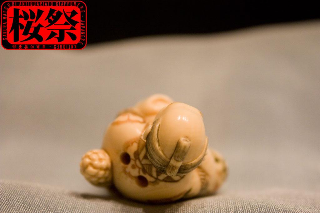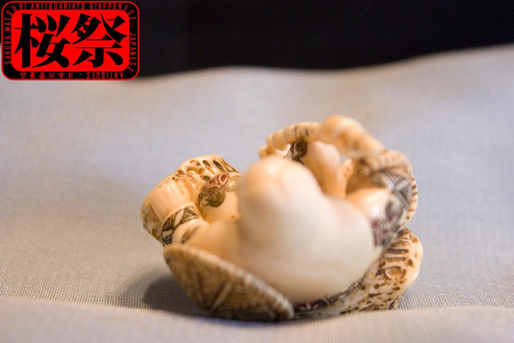 peculiaritá risiede proprio nel colore, inusuale nei netsuke, qui distribuito