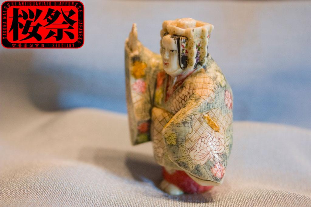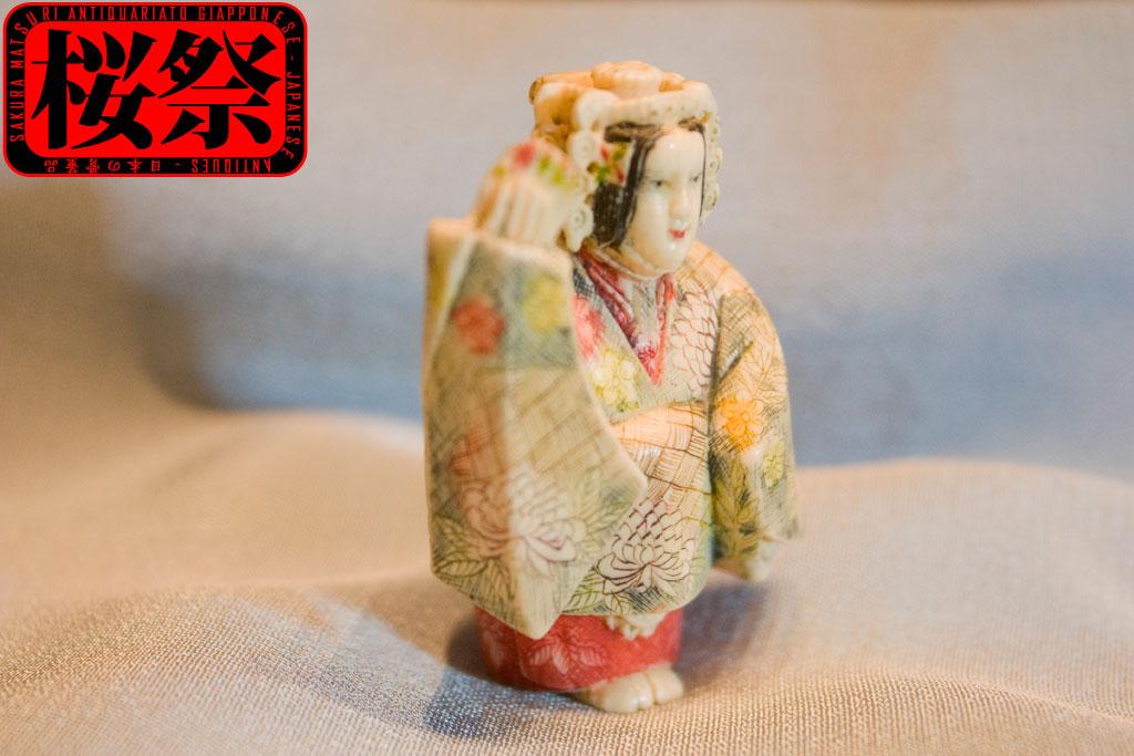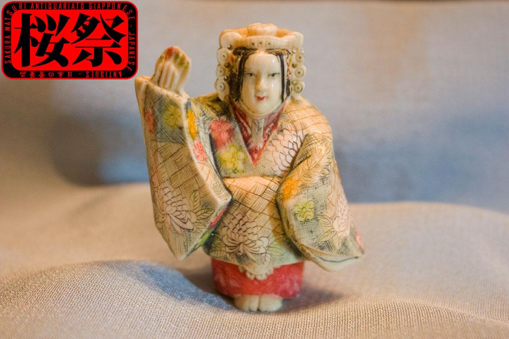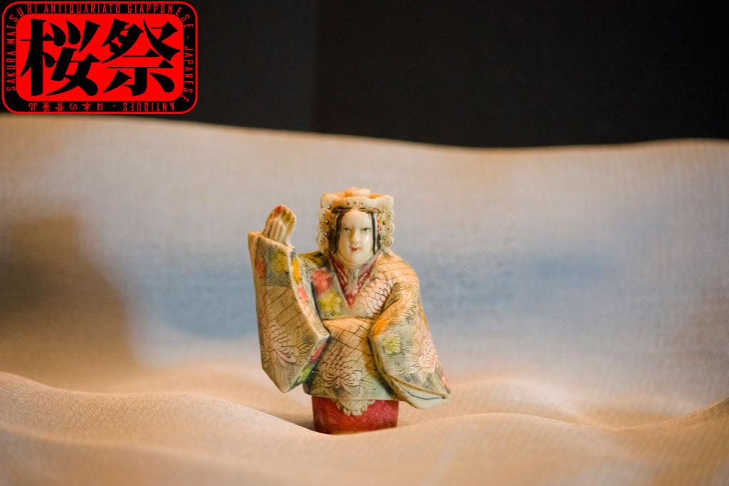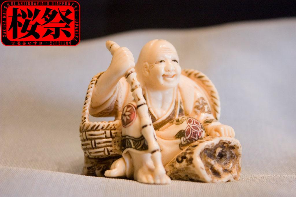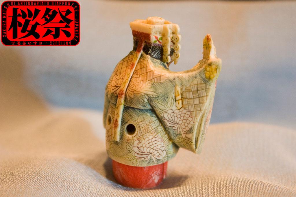 peculiaritá risiede proprio nel colore, inusuale nei netsuke, qui distribuito