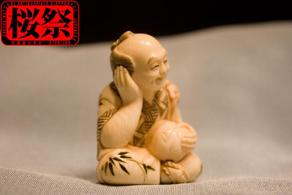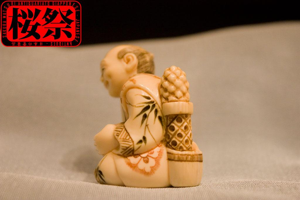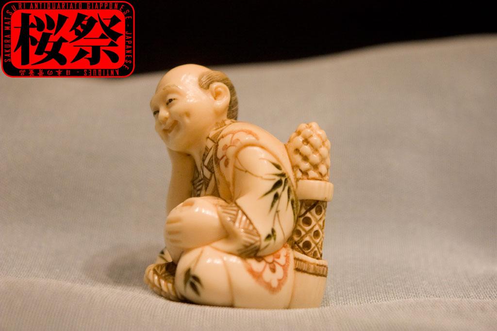 netsuke in avorio del tardo periodo Edo, XIX sec, firmato Shozan. L'uomo qui