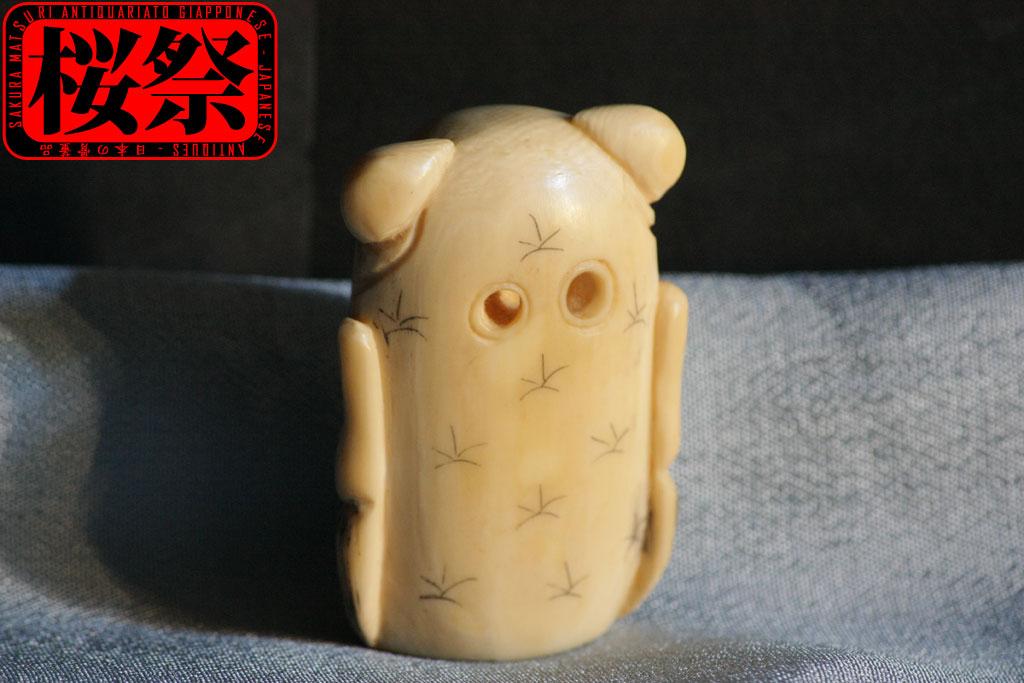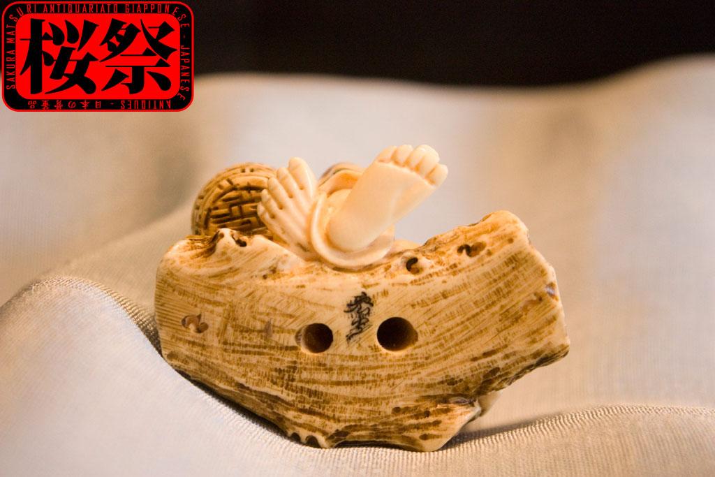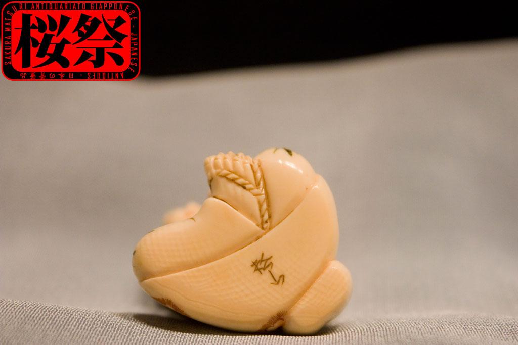 netsuke in avorio del tardo periodo Edo, XIX sec, firmato Mitsuyuki. Il netsuke