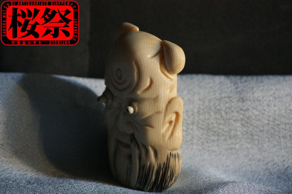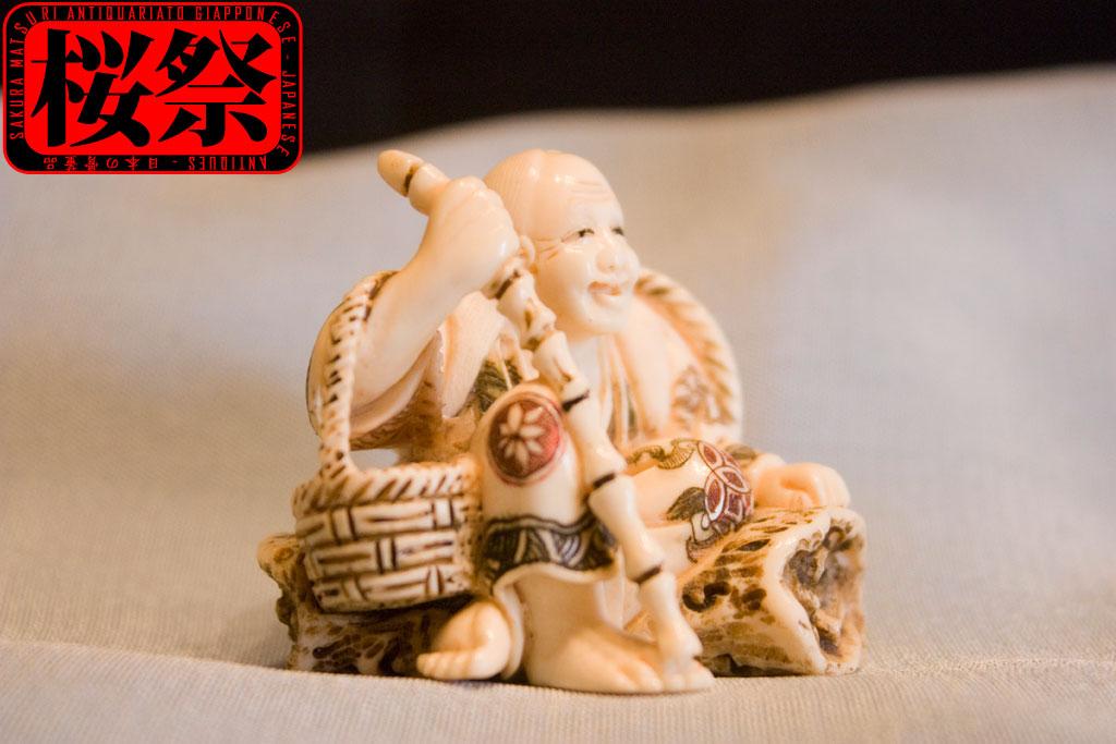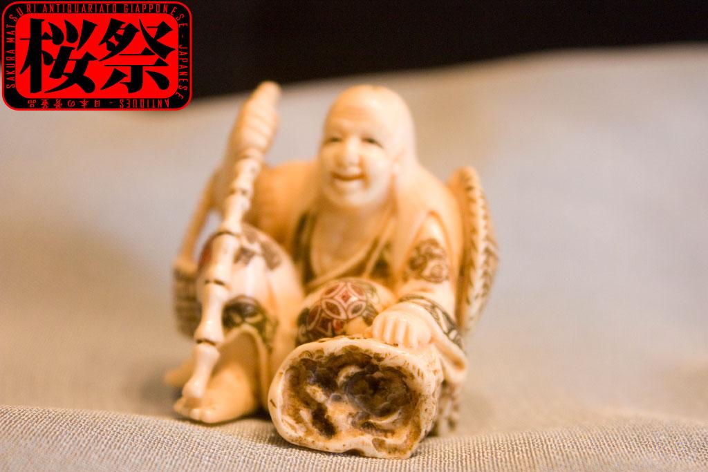 mennetsuke. Vi é rappresentato un saggio in un'iconografia classica, con la
