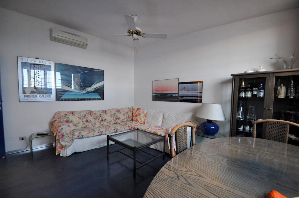 A soli 100 metri dalla spiaggia luminoso appartamento perfettamente ristrutturato, in piccolo condominio al primo ed ultimo piano composto da ingresso, soggiorno che si apre su un balcone, dove è possibile pranzare e godere di una splendida vista sul porto, cucinotto separato, due camere di cui una matrimoniale ed una singola con letto a castello, bagno con doccia. Rifiniture buone. i colori degli interni sono in armonia giocati sul blu del pavimento e delle tinteggiature delle porte con maniglierie in tono con l'ambiente. Infissi esterni in ottimo stato. Aria condizionata.