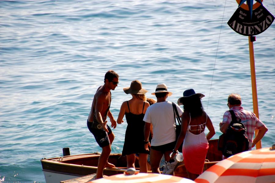 L'esperienza inizia con un rilassante traghetto che vi trasporta direttamente da Positano all'esclusiva spiaggia del Ristorante Bagno D'Arienzo.