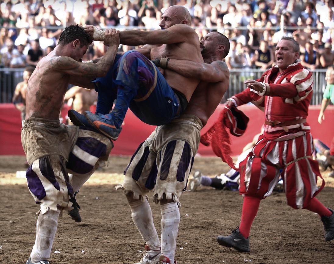 The winner is awarded a white cow or "chianina", famous in Italy for its Fiorentina, a t-bone typical from Florence.