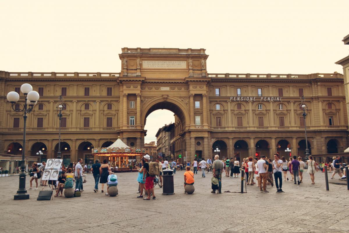Когда закончите с Via Tornabuoni, направляйтесь к площади Республики (самая большая площадь во Флоренции), проходя через доминирующий элемент площади - Триумфальную арку. С этого момента ваш шоппинг становится культурным во всех смыслах. Здесь, на площади, вы можете легко насладиться атмосферой города: уличные музыканты, которые играют на гитаре, саксофоне, даже виолончели ... Художники, которые делают потрясающие вещи прямо перед вами. Знаменитая карусель, итальянские полицейские, карабинеры, которые ходят по площади и болиают друг с другом ... Говорят, что форму для них делает Prada и D & G, но, к сожалению, это не так.