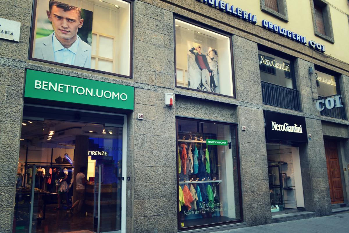 Добро пожаловать на площади Синьории. Это Г-образная площадь перед Палаццо Веккьо. Эта площадь - координационный центр Флорентийской республики и до сих пор сохраняет свою репутацию как политический центр города. Если вы дошли до Loggia Dei Lanzi (широкие арки под открытым небом, скульптурная галерея), нужно повернуть направо. Теперь вы движетесь к Zara, Benetton, H & M, Disigual, Puma, Geox, Clarks и LUI JO.