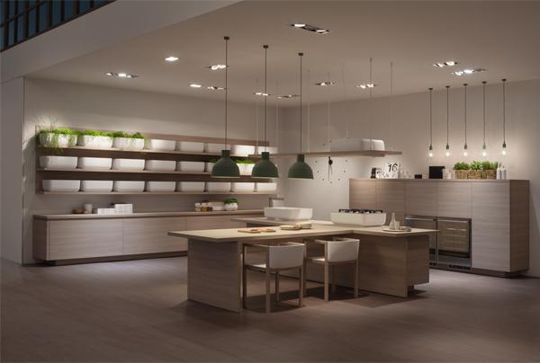 The design of the light is layered, with accent, display and ambient lighting intended bring out the best in the merchandise. In response to the light and airy interior scheme proposed by Universal Design Studio for the ground floor, glass, pendant luminaires, reminiscent of champagne bubbles , draw the eye from the accent lighting fixtures that are focused toward key display counters.