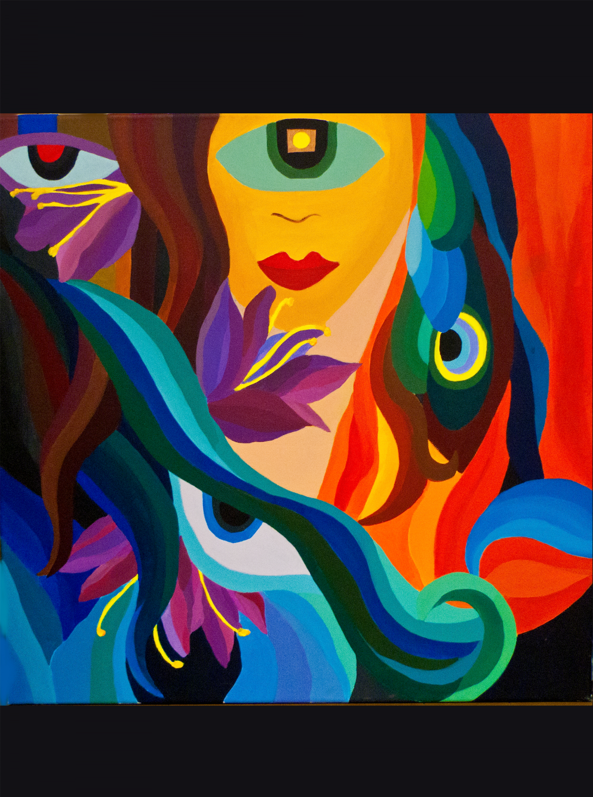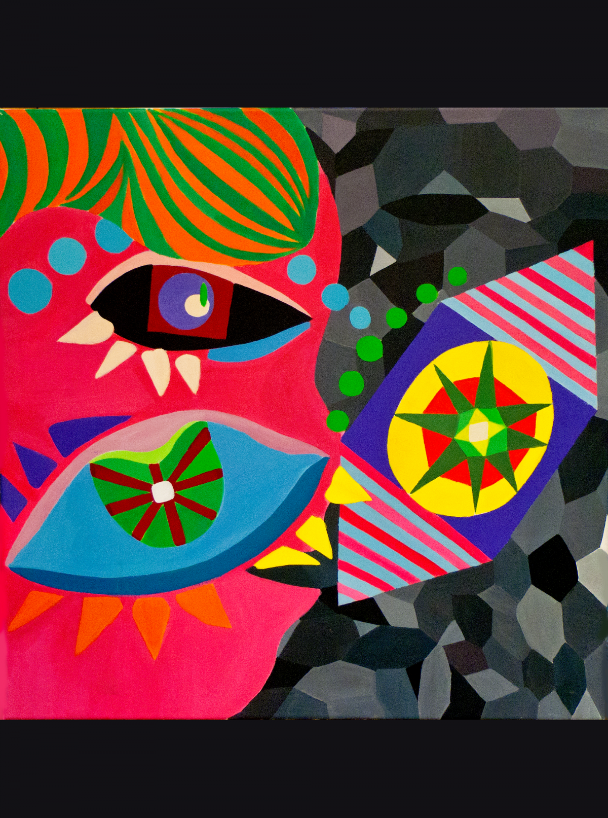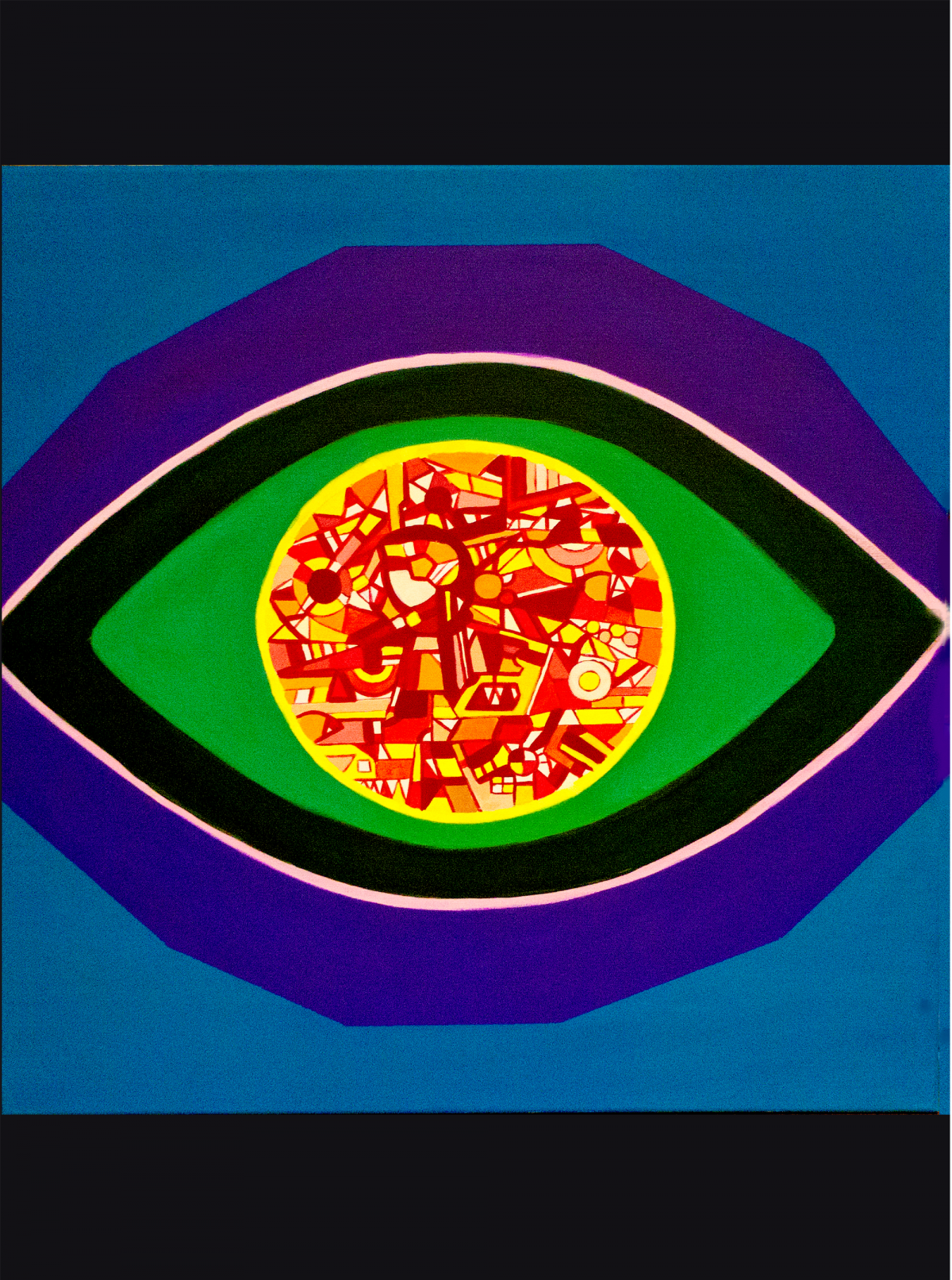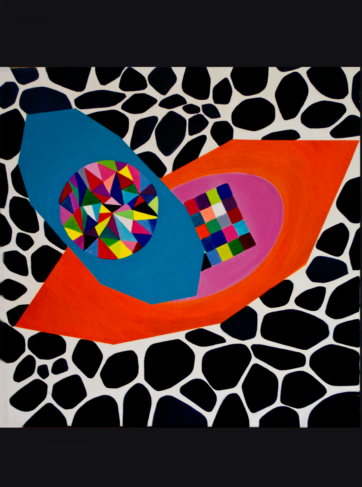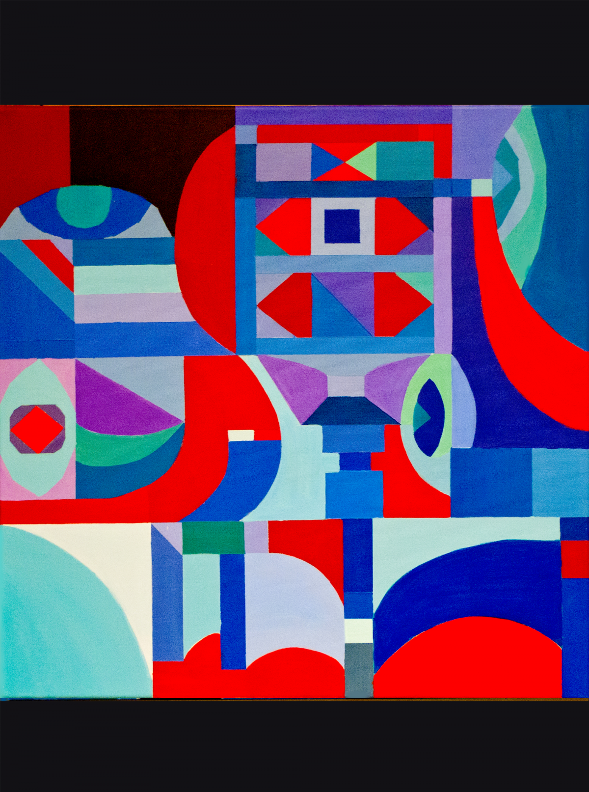 一对夫妇在博物馆内观赏艺术作品。近视的妻子,站在一副作品前,对她丈夫说: