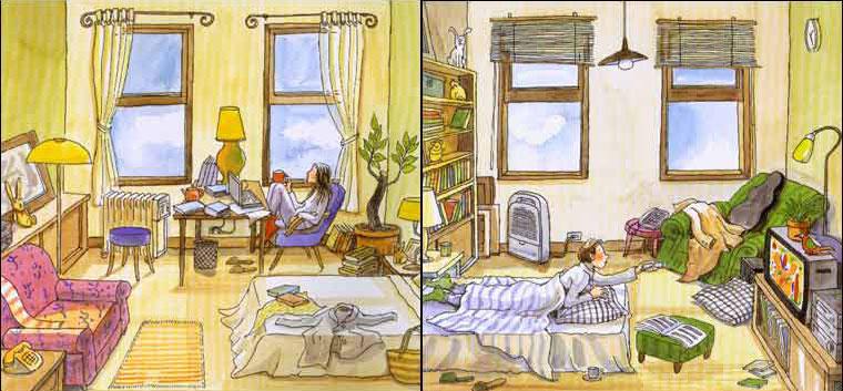 天气晴朗。她住在城市郊区的一栋旧公寓大楼里,每次出门,不管去哪里,总是习惯性的 先向左走。他住在城市郊区的一栋旧公寓大楼里,每次出门,不管去哪里,总是习惯性的先向右走。
