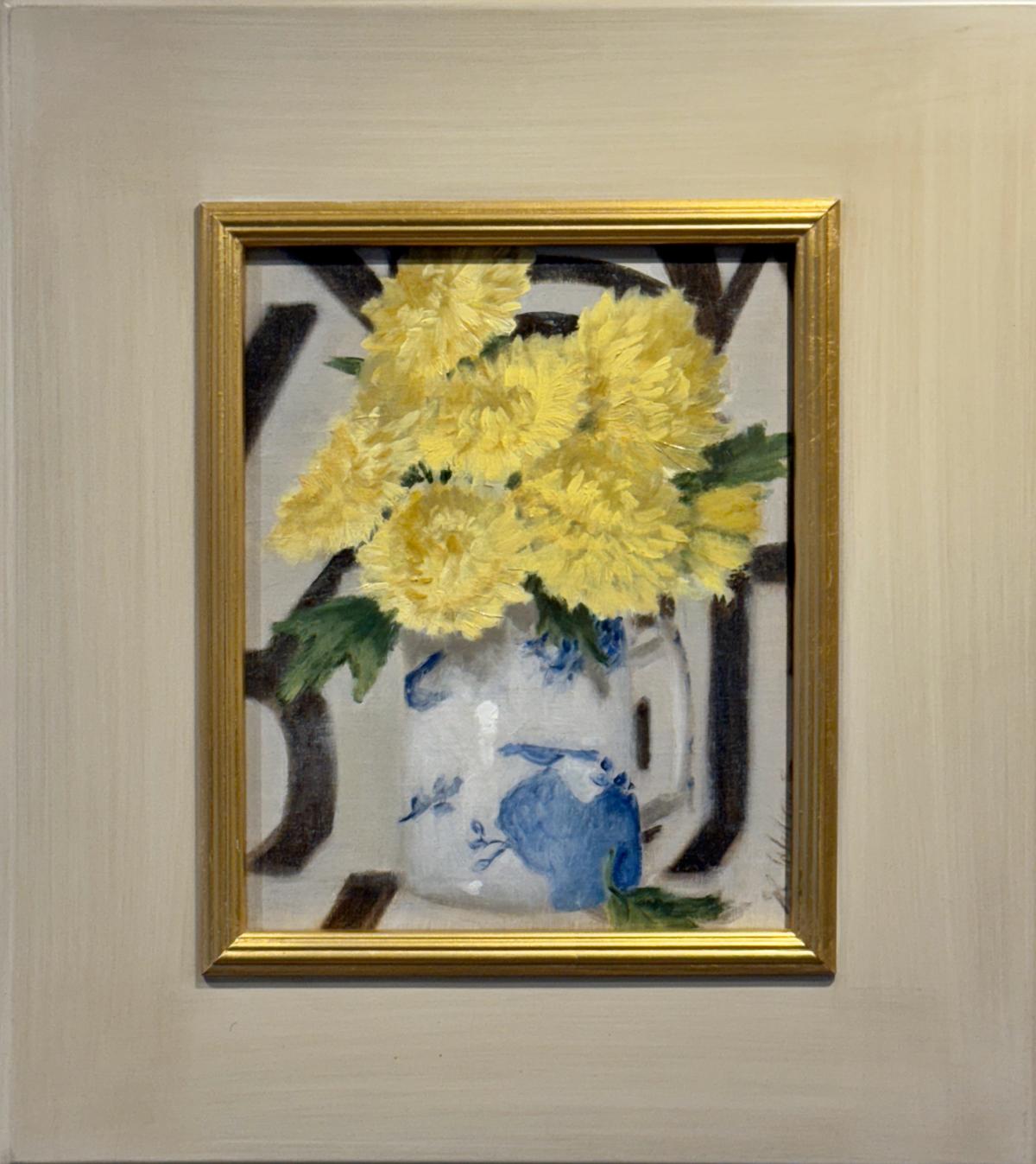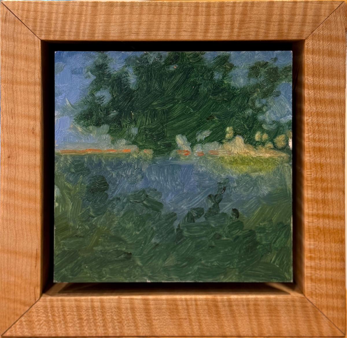 Each is framed in a solid curly maple floater frame custom made by an expert frame maker. Contrasting corner splines as seen on the facing page make these extra special.
