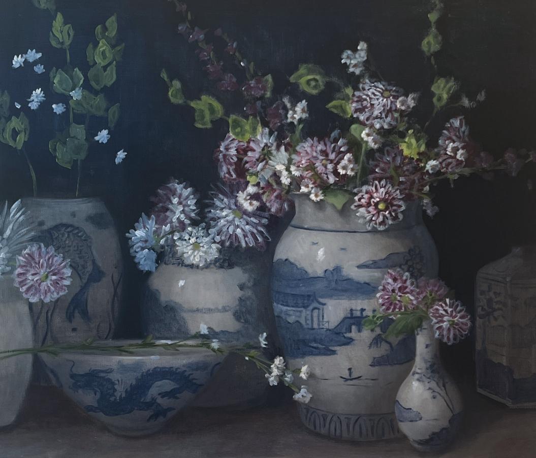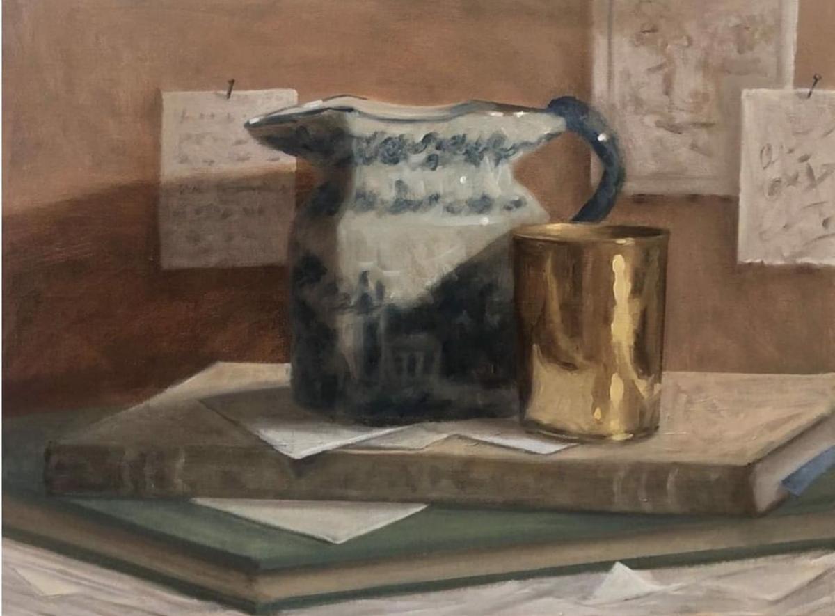 For those of you who have followed my work for some time, but don't always see my Instagram posts where I explain my thought process, a note about my recent minimal still life pieces: They are probably somewhat jolting in their departure from my usual style, but I am finding them fruitful in many ways. I began working on a concept of simple objects in close proximity to one another to work on subtlety of color, temperature, and value shifts. As I was doing this, I found myself marveling at the societies, spanning centuries and continents, that produced these vessels. I am always looking for connections between disparate things--because I believe they are there and focusing on them is more hopeful and helpful than being confused, or worse, angered, by the differences that we readily see. So in these pictures, the objects interacting with each other are purposely chosen from different eras and countries, and it is both their differences and similarities that make a beautiful whole. It is a subject I find endlessly worthwhile.