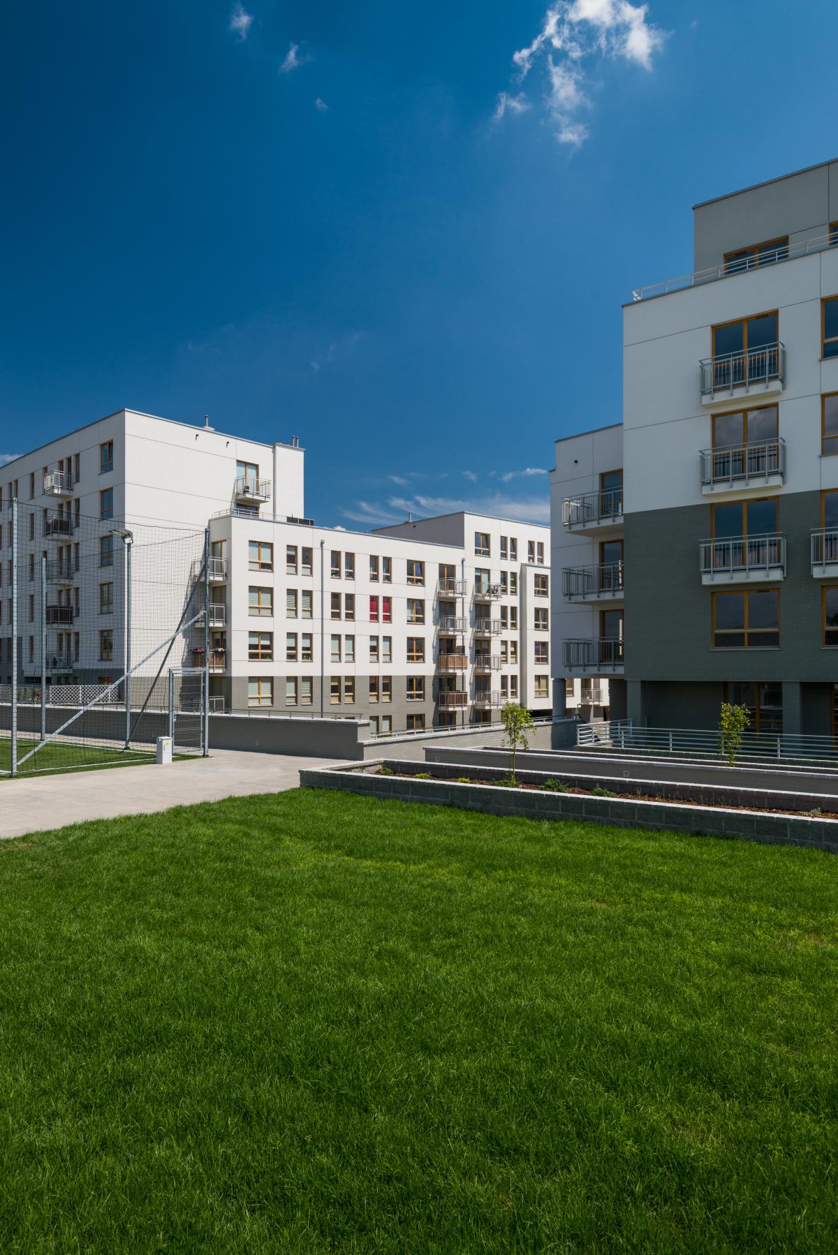 Teren inwestycji wypełniają zielone skwery, alejki spacerowe oraz ścieżki do joggingu. Bogata strefa zieleni z formami małej architektury,