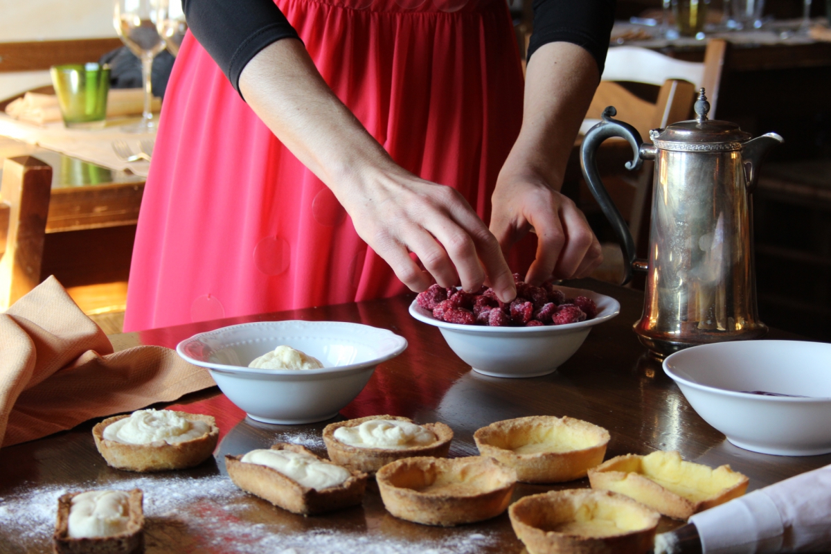 A golden shortcrust pastry filled with white chocolate mousse and topped with a dense raspberry sauce: is the last dessert signed Simona Quirini, chef at Canto del Maggio in Terranuova Bracciolini (Arezzo). Chef Simona loves to create fancy gluten free desserts for St. Valentines day (did you remember her Chocolate love cake?). Creamy inside, crumbly on the outside⦠you will remain amazed by the match: white chocolate and raspberry sauce. Enjoy it!