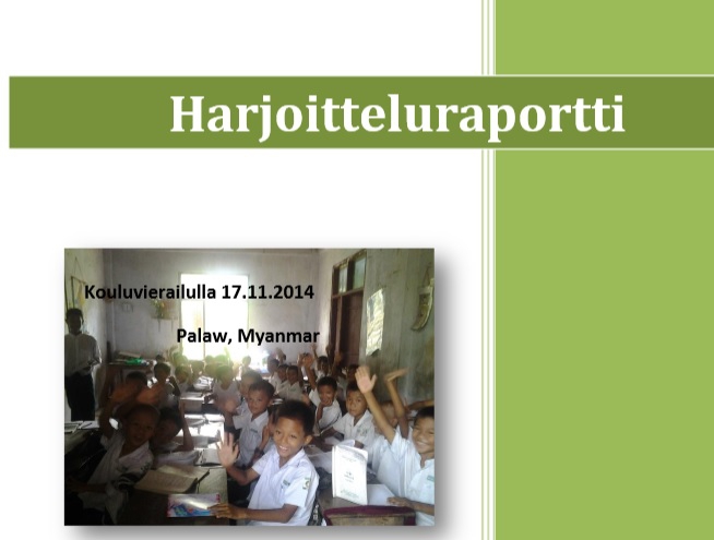 Harjoittelusta laaditaan kirjallinen raportti, jossa käsitellään
